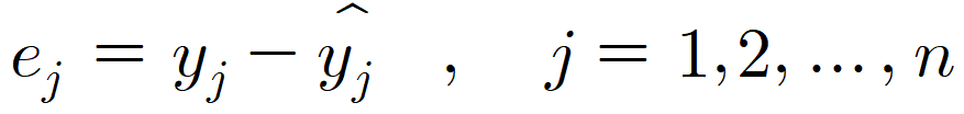 이때 표본 집단의 회귀식에서 예측된 값 - 실제 관측값을