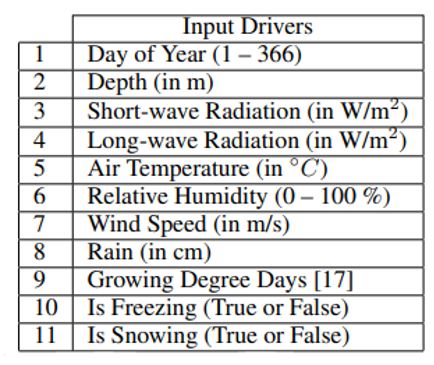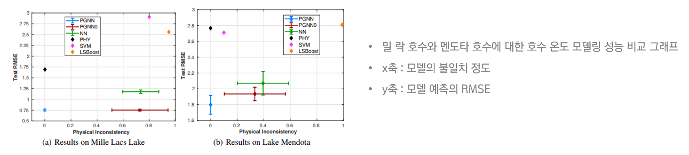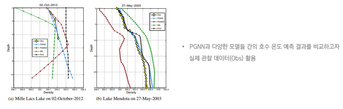 위 모델들은 PGNN과 동일한 입력 데이터를 사용하여 호수의 온도를 예측하지만