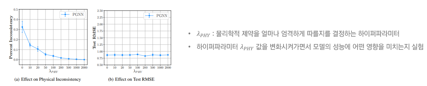 세 번째로는 PGNN의 손실함수에 포함되어 있었던 하이퍼파라미터인 람다 PHY 값을 변화시켜 가면서