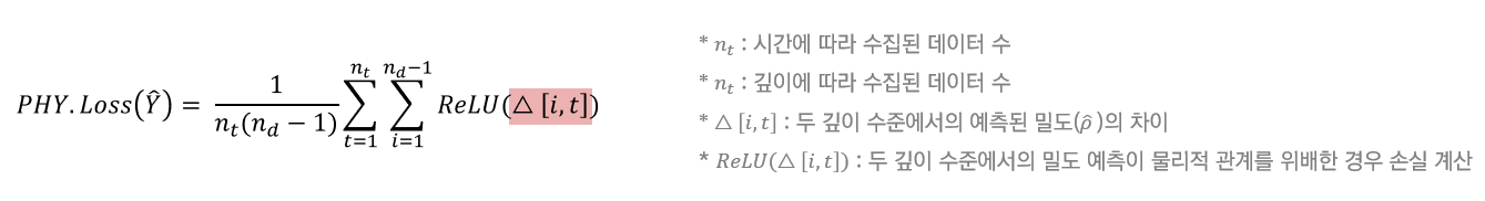 위와 같이 정의한 물리학적 제약식을 활용하여 물리학적 손실함수를 수립하였고,