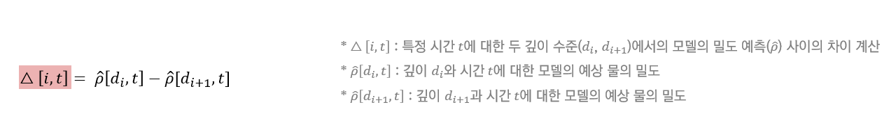 그다음 깊이 di+1에서의 예측된 밀도 간의 차이를 나타내는 수식인데,
