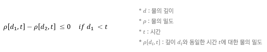 앞서 살펴봤던 아래의 수식을 통해 물의 밀도-깊이 관계가 위배되는 경우를 파악하고자 하였습니다.